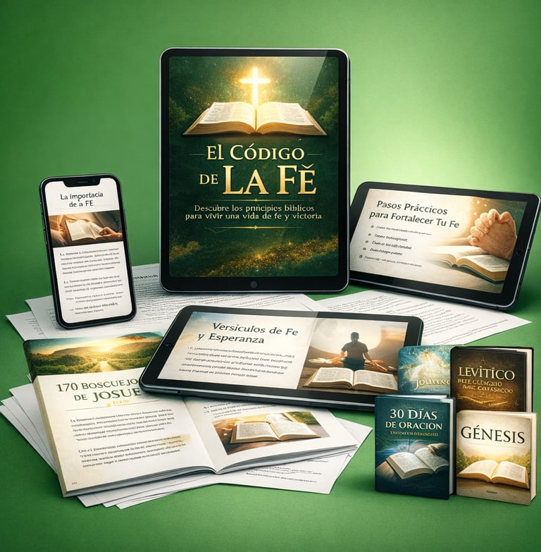 Al adquirir ÉL CÓDIGO DE LÉ FÉ hoy, recibirás totalmente GRATIS estos 5 regalos exclusivos que complementarán tu estudio y crecimiento espiritual:
